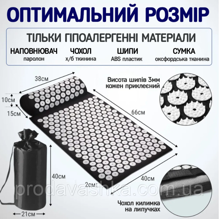 Акупунктурний килимок масажний аплікатор Кузнєцова з валиком подушкою Чорний ортопедичний набір масажер для спиниКилимок масажно-акупунктурний ProSource Acupressure Mat and Pillow Set з подушкою — простий, перевірений, б... Читати далі...