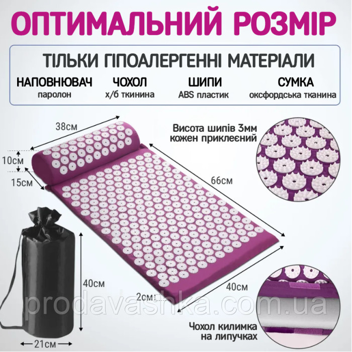 Акупунктурний килимок масажний аплікатор Кузнєцова з валиком подушкою Фіолетовий ортопедичний набір масажер для спиниКилимок масажно-акупунктурний ProSource Acupressure Mat and Pillow Set з подушкою — простий, перевірени... Читати далі...