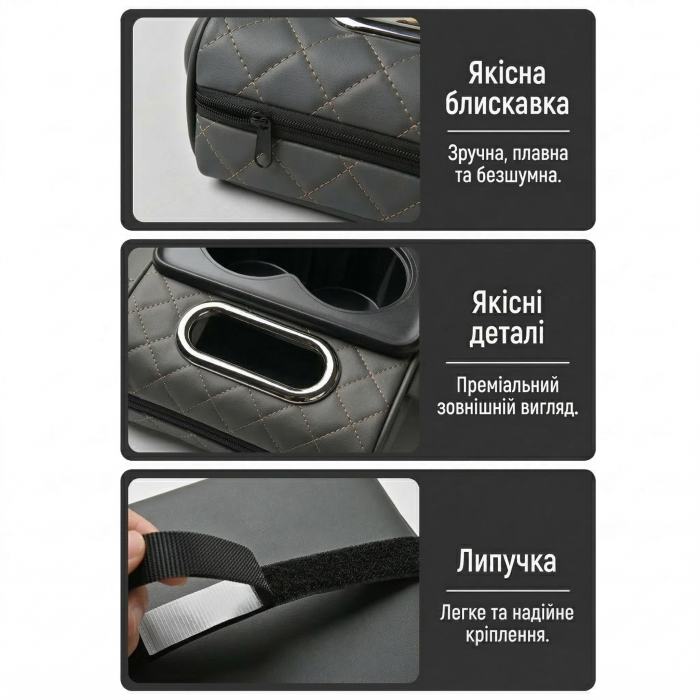 Автомобільний підлокітник із двома підстаканниками універсальний органайзер для авто серветок подушка-підставка з кишенею