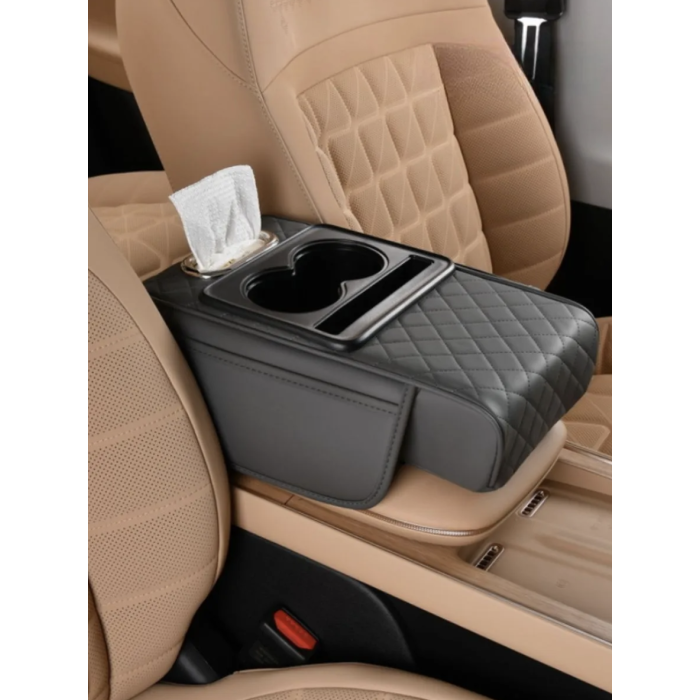 Автомобільний підлокітник із двома підстаканниками універсальний органайзер для авто серветок подушка-підставка з кишенею Сірий