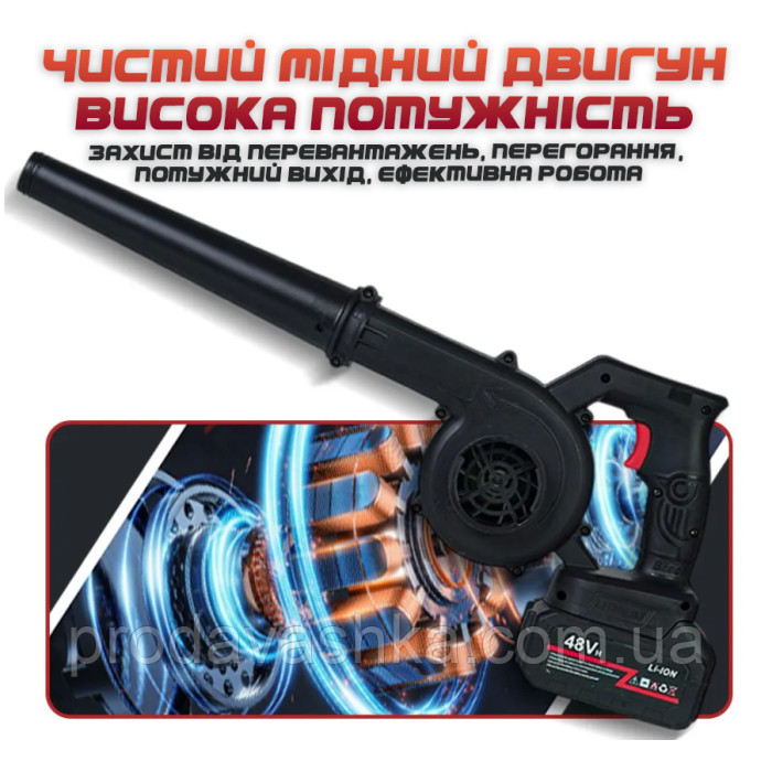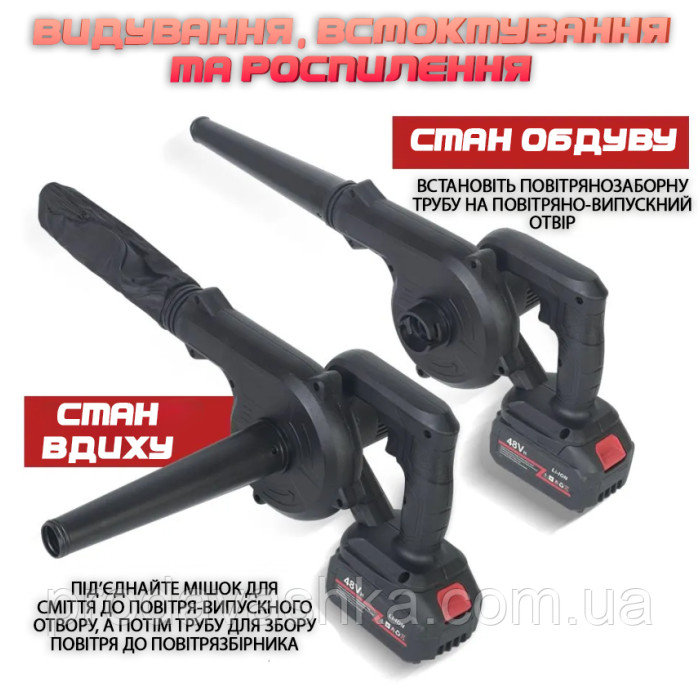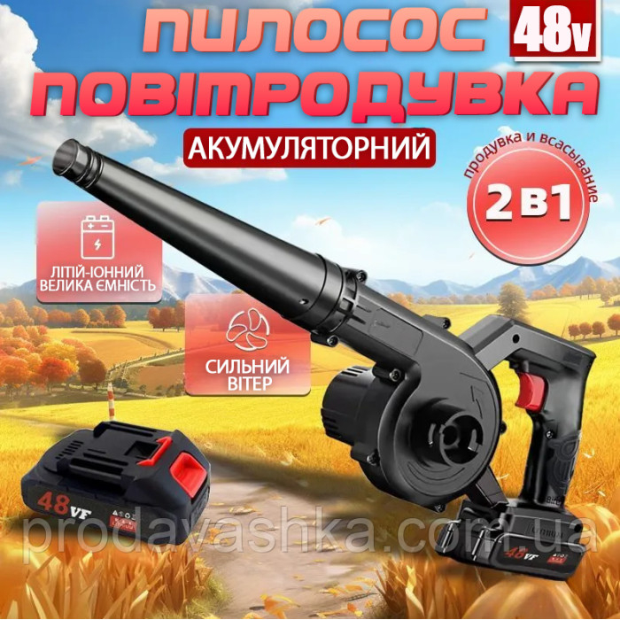 Бездротова садова повітродувка 2 АКБ 48V акумуляторний пилосос для прибирання листя у саду з мішком пилозбірником електрична портативна