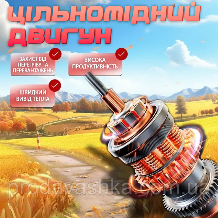 - Бездротова робота: Два потужні 48V акумулятори забезпечують тривалий час роботи без необхідності постійного підключення до мережі, що особливо зручно для великих ділянок.