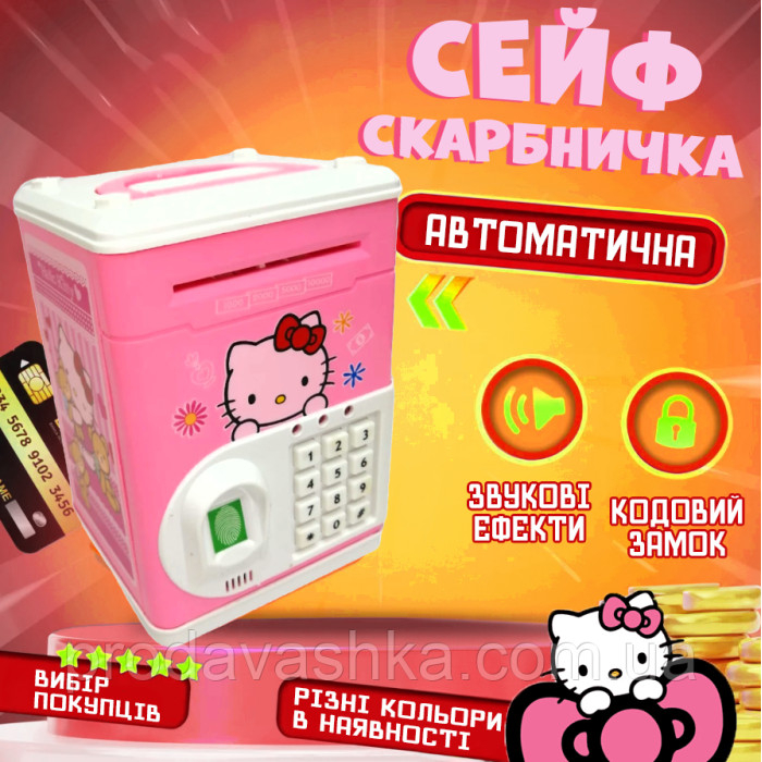 Дитяча електронна скарбничка іграшковий сейф Hello Kitty з відбитком, кодовим замком та купюроприймачем для паперових грошей та монет зі звуковими ефектами