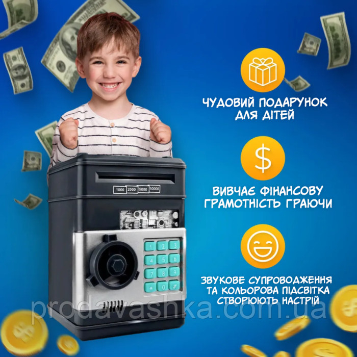 Кожна дитина хоче мати власні кошти для покупки іграшок або солодощів. Збирати та відкладати гроші – це довгий і нудний процес. Зробити цей процес цікавішим допоможе сейф скарбничка для дітей з кодовим замком, завдяки якій ваша дитина з більшим задоволенням буде відкладати гроші та станемо більш фінансово грамотною.