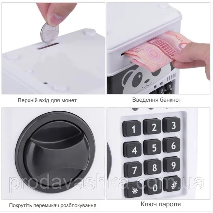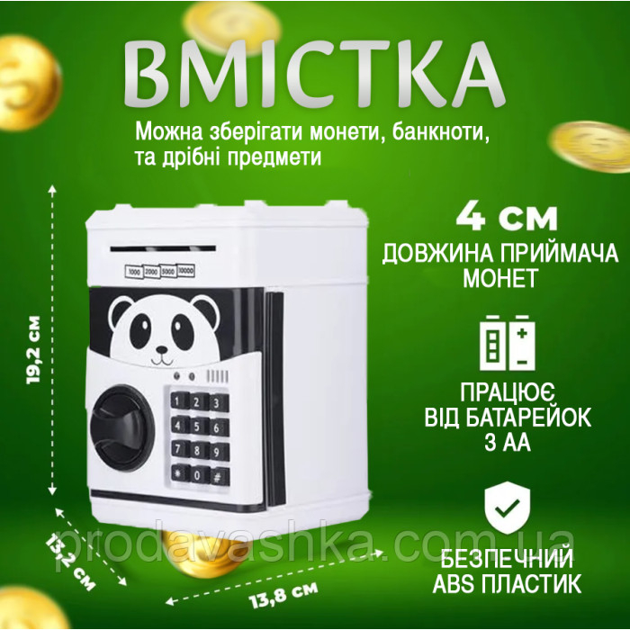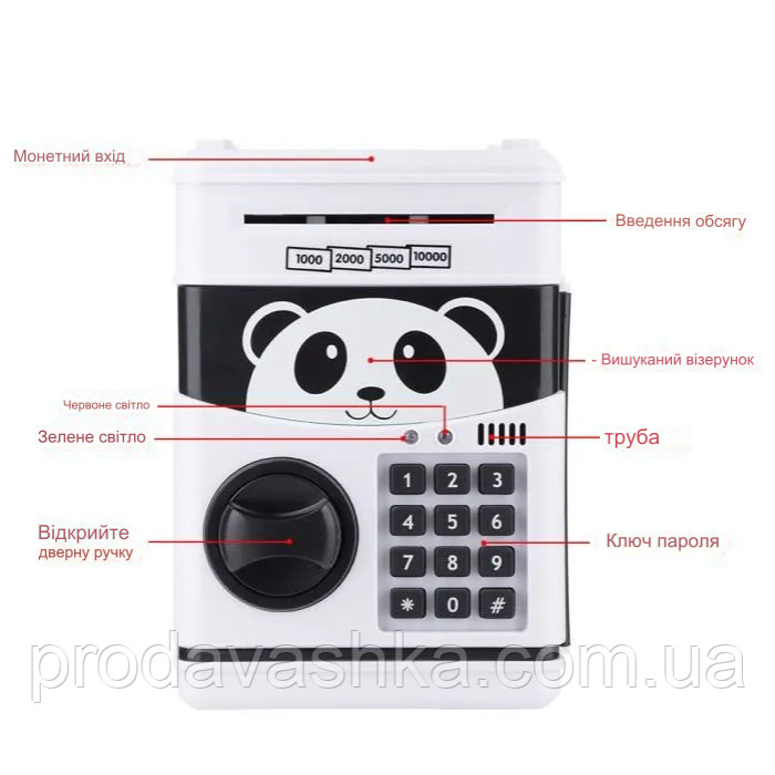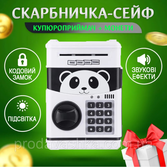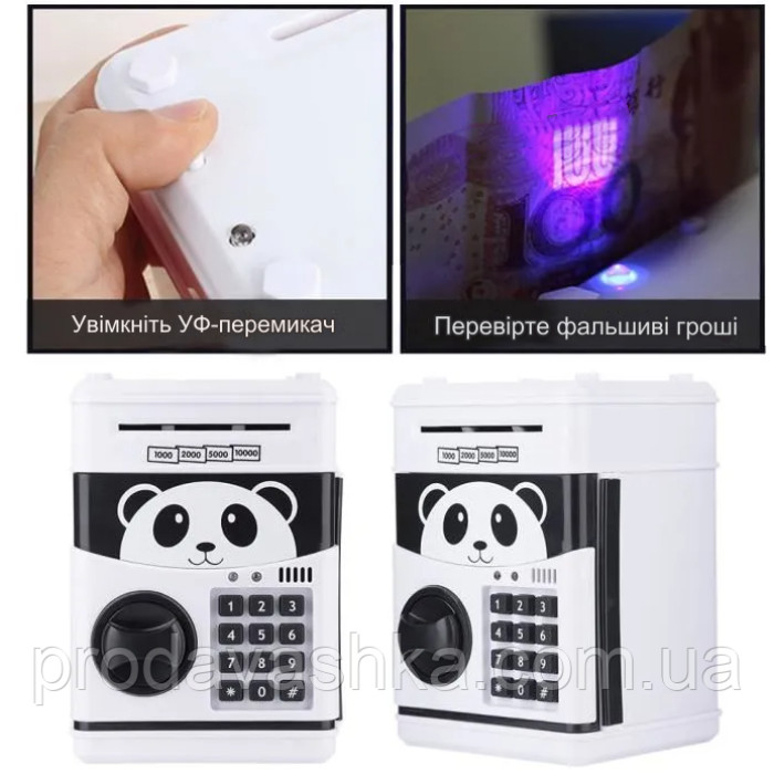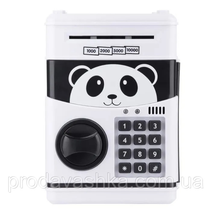 Дитяча електронна скарбничка сейф-банкомат Панда з кодовим замком та купюроприймачем для паперових грошей та монет зі звуковими ефектами