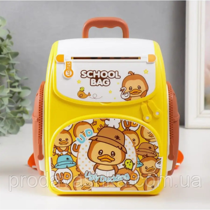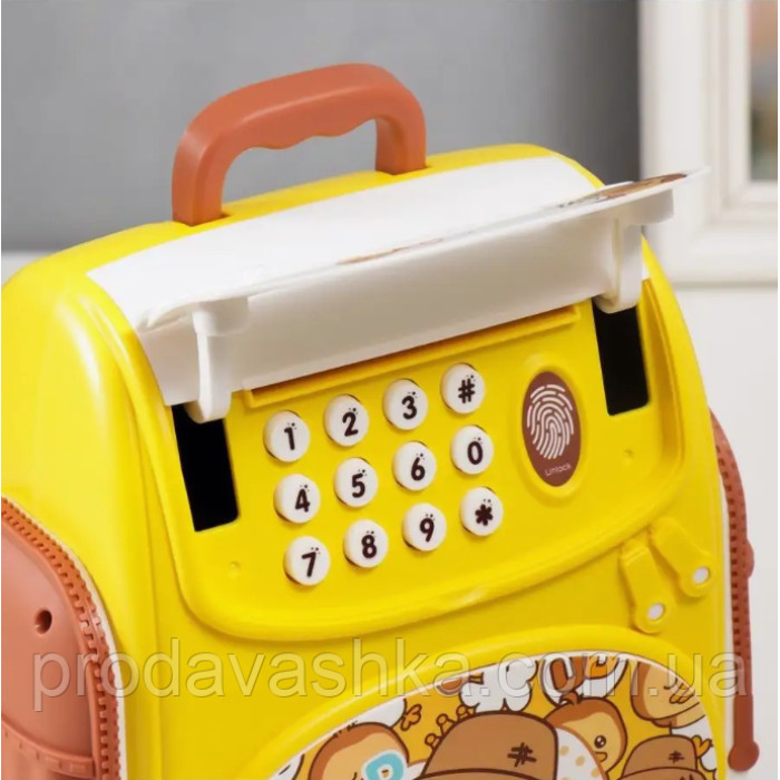 Дитяча електронна скарбничка сейф-рюкзак Каченя з кодовим замком вібдитком пальця купюроприймач для паперових грошей монет Жовта