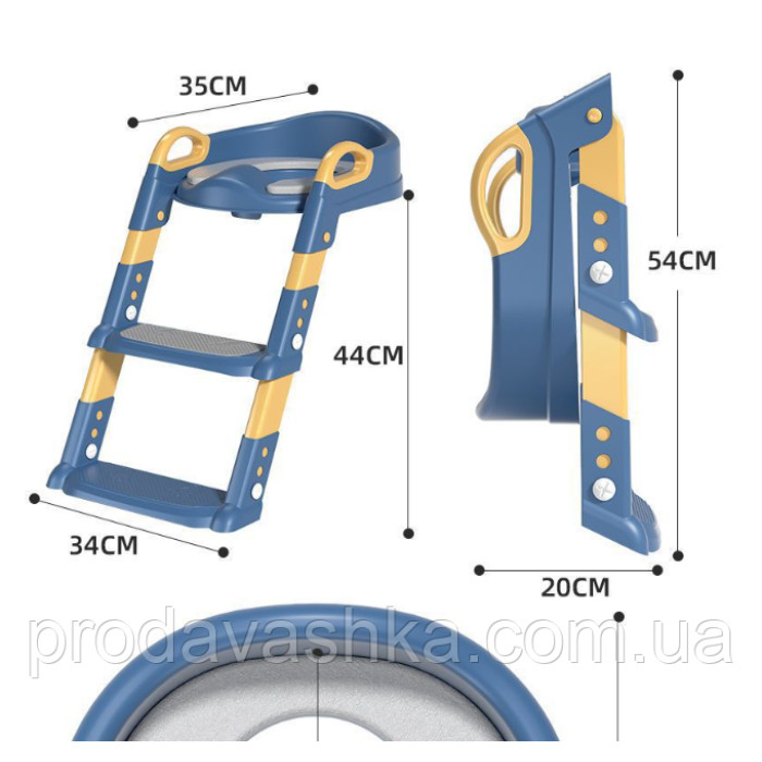 Дитяча приставка до унітазу зі сходами та ручками насадка на стульчак сидіння туалету сходи для дітей Синє