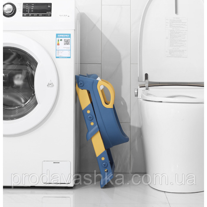 - Сходи: Накладка оснащена рухомими сходами, які легко складаються та розкладаються. Це дозволяє дитині самостійно підніматися та сідати на унітаз без допомоги дорослих.
