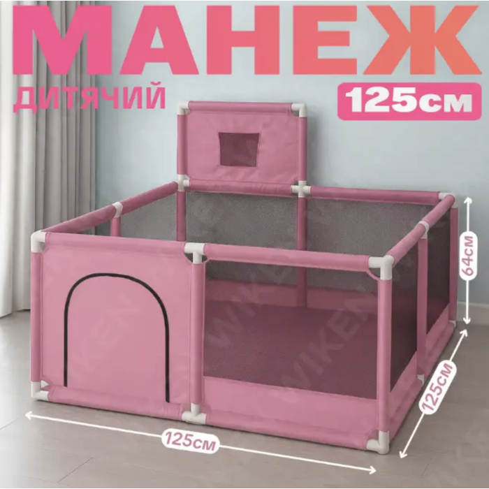 Дитячий ігровий манеж-огорожа 125х125х64см для ігор з баскетбольною корзиною та кишенею для іграшок для дітей Рожевий