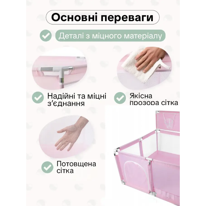 Манеж 2-в-1 — ігрова зона та спортивний куточок в одному рішенні. Дитячий ігровий манеж з кільцем для баскетболу та м’ячиками — це не лише безпечний простір для малюка, але й чудовий спосіб розвивати координацію, моторику та любов до активних ігор.