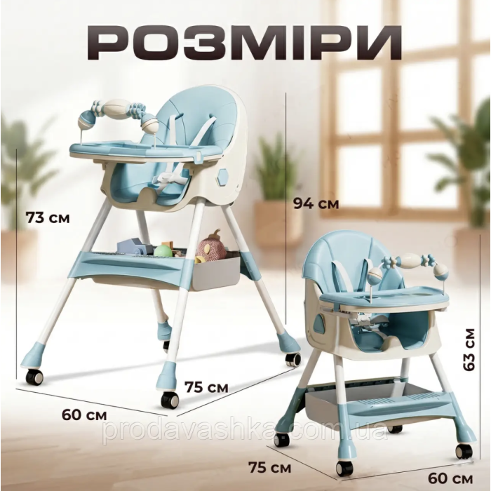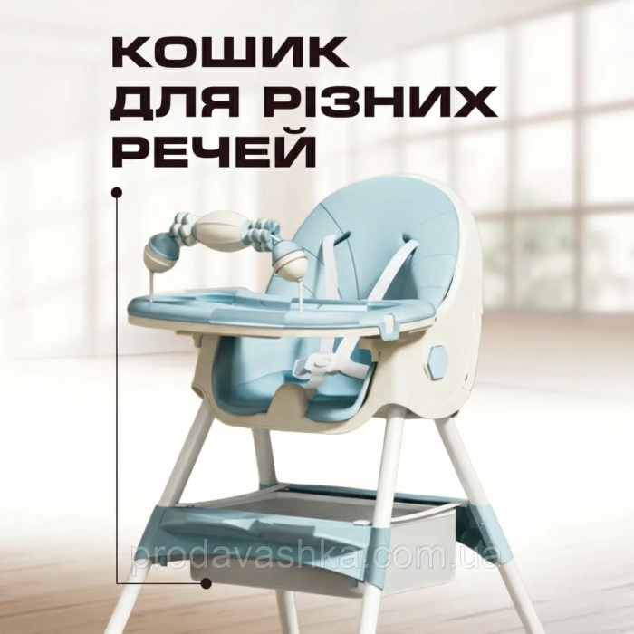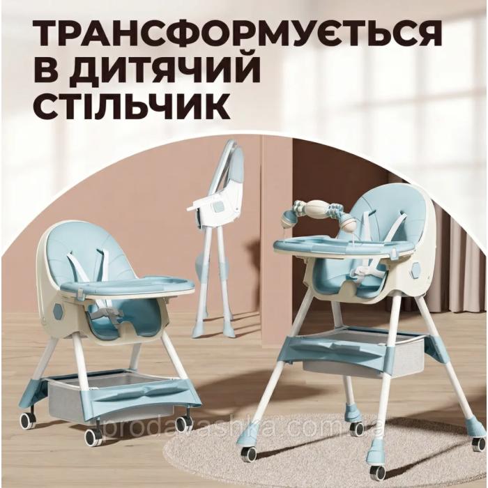 Дитячий стільчик трансформер 2в1 для годування дітей з регульованою спиною та висотою на коліщатках з іграшками БлакитнийДитячий стільчик-трансформер – універсальне рішення для годування, ігор та відпочинку малюка в дома... Читати далі...