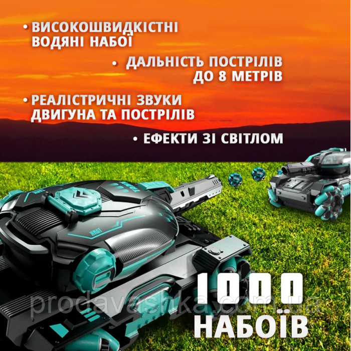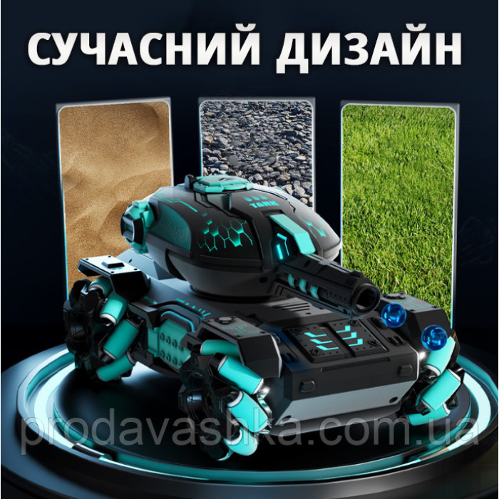 Дитячий танк-всюдихід стріляє кульками орбіз на радіокеруванні з керуванням рукою та пультом іграшковий водні кулі