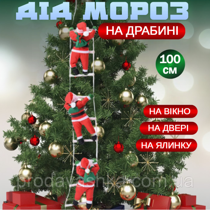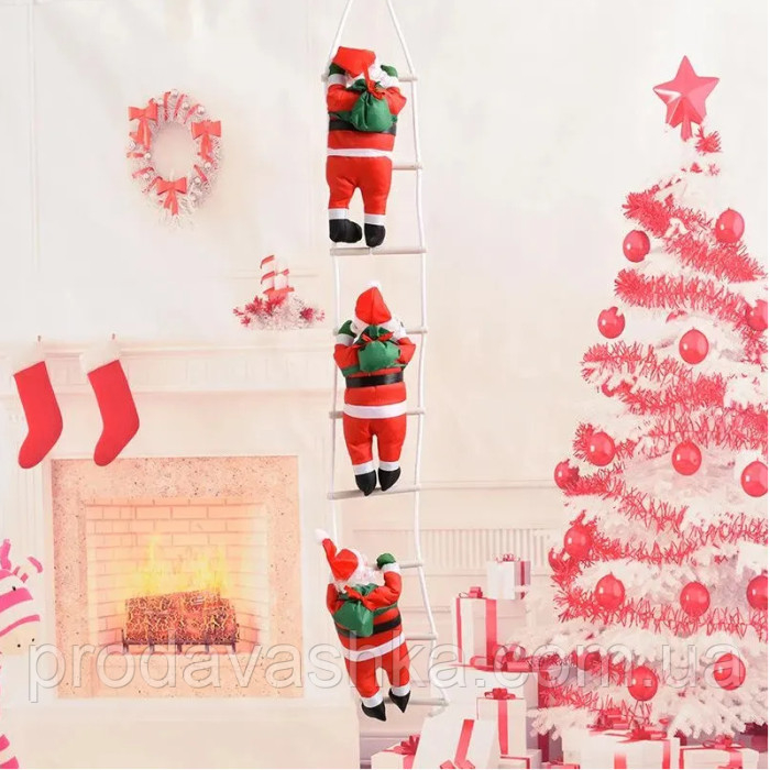 Іграшка Дід Мороз 3шт піднімається сходами 100см Новорічний декор для дому на ялинку фігурка Санта Клаус 20смЯк приходити до нас Дід Мороз? Так, саме по крышах і через димар, а для цього йому потрібні сходи, щоби подарув... Читати далі...