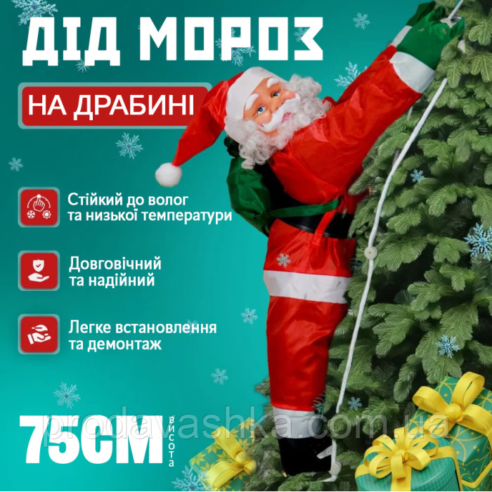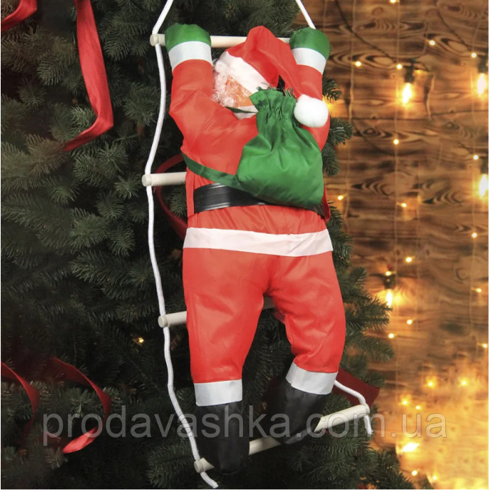 Іграшка Дід Мороз піднімається сходами 75см Новорічний декор для дому на ялинку фігурка Санта Клаус 50смЯк приходити до нас Дід Мороз? Так, саме по крышах і через димар, а для цього йому потрібні сходи, щоби подарувати п... Читати далі...