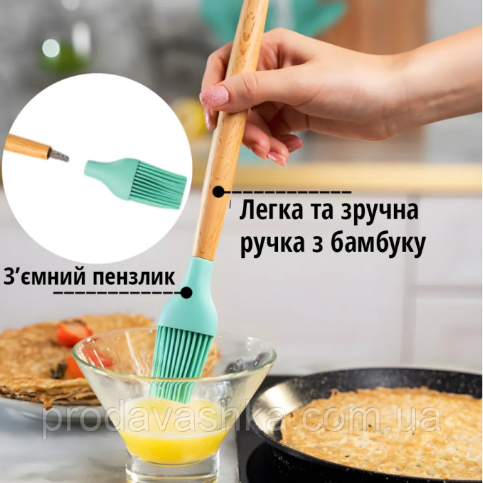 - М'яке силіконове покриття кухонних аксесуарів захистить антипригарне покриття посуду від подряпин та пошкоджень під час приготування їжі.