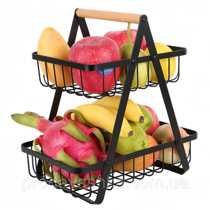 Металевий розбірний кошик для зберігання фруктів та овочів двоярусна портативна фруктівниця на кухню залізна з дерев'яною ручкоюОрганізуйте зберігання фруктів та овочів за допомогою стильної фруктівниці з металу. Дворівн... Читати далі...