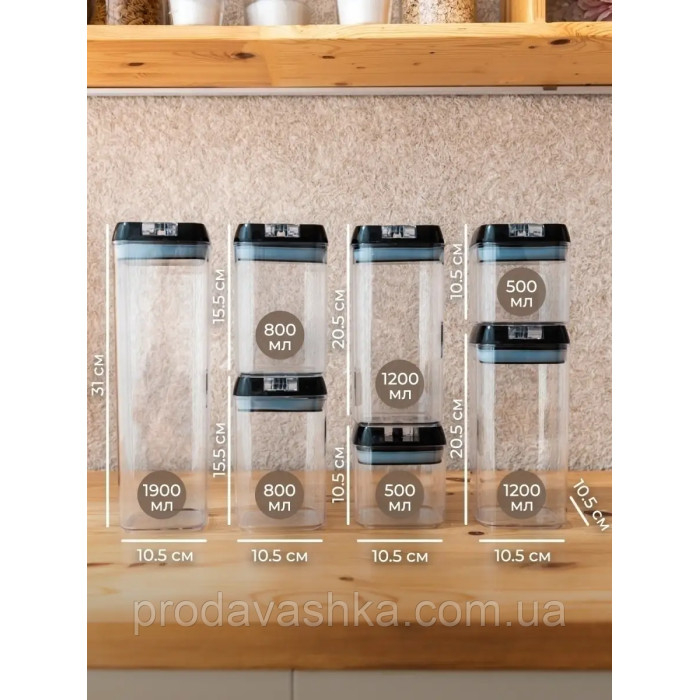 Набір контейнерів для зберігання сипких круп 7 пластикових ємностей з вакуумною кришкою органайзери для кухні