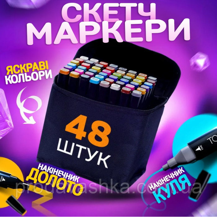 Набір скетч маркерів Sketchmarker 48шт палітра кольорів для малювання та скетчингу двосторонні спиртові фломастери в сумціСкетч-маркери Touch – це найпопулярніші спиртові скетч-маркери в Україні. Є одними з найбільш попу... Читати далі...