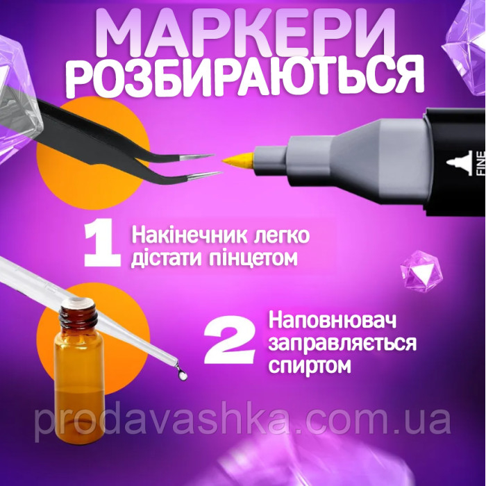 - Кожен маркер має два стрижні: кулеподібний та клиноподібний;
