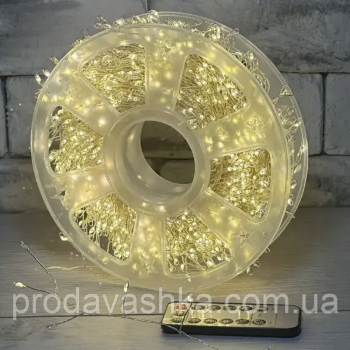 Новорічна світлодіодна гірлянда мішура Крапля роси 20м 600led від мережі з пультом Хвойна лапа нитка білий провід Теплий білий
