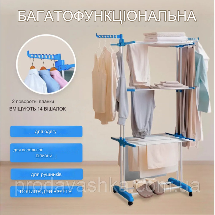 Підлогова складана сушарка для одягу та білизни 3 яруси вертикальна пересувна сушка речей 3-х рівнева