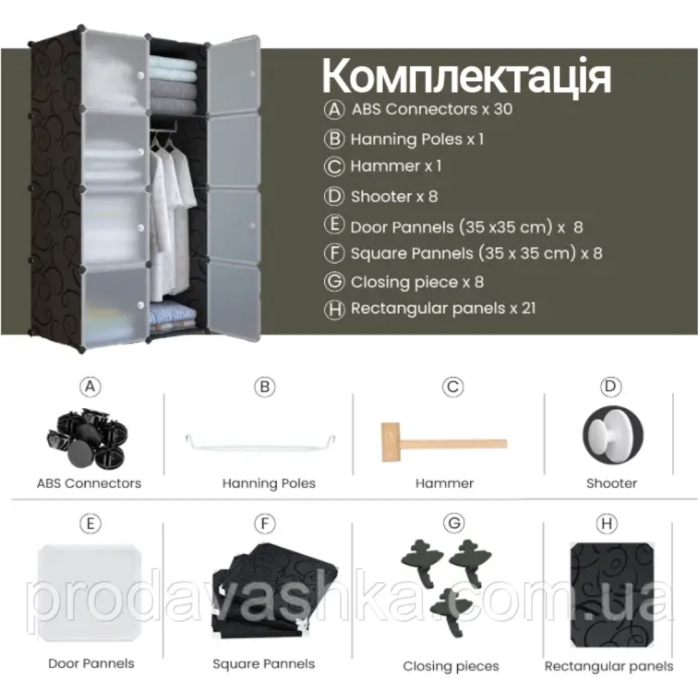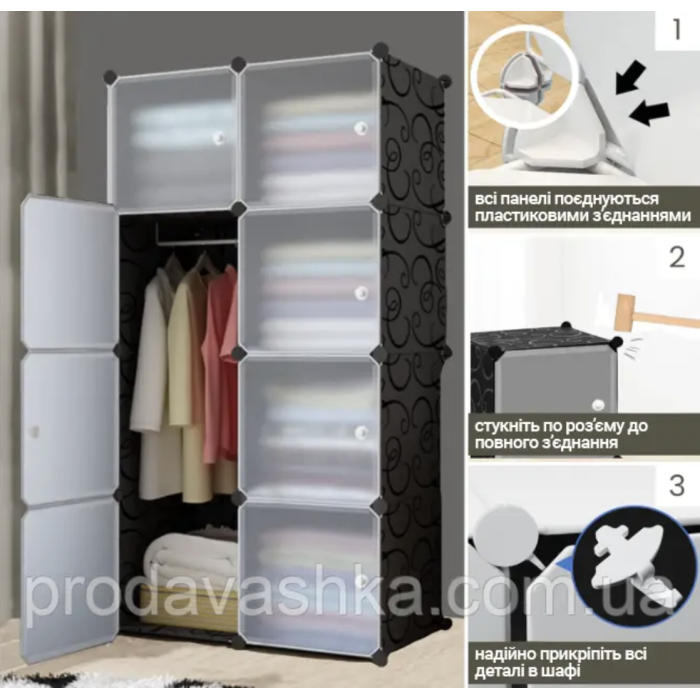 - Для складання такої шафи не потрібно жодних інструментів