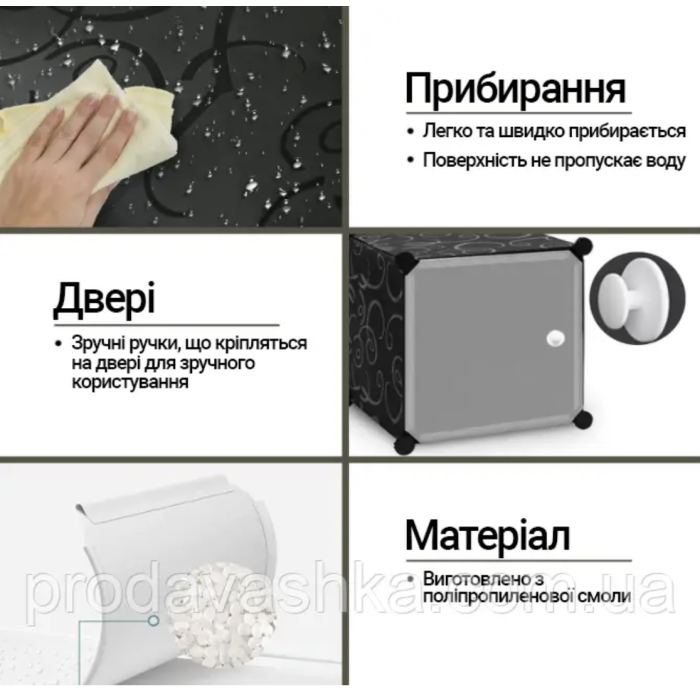 Пластикова шафа для одягу та взуття на 2 секції Чорна органайзерШафа Cube Cabinet «МР 28-51» є однією з найякісніших шаф для зберігання взуття, які можна знайти на інтернет-ринку. Ці шафи у формі кубиків підходять для сі... Читати далі...