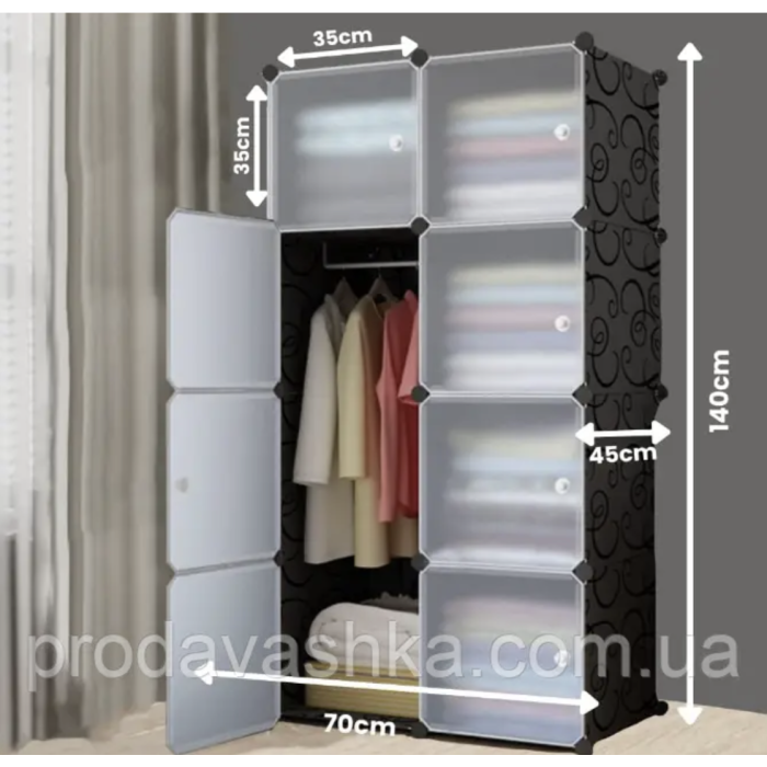 Збірна пластикова шафа органайзер «МР 28-51» - це найкраще рішення, якщо ви шукаєте шафу в орендовану квартиру, у гуртожиток або у власному будинку. Шафа складана з поліпропілену Storage Cube Cabinet - легко збирається і розбирається, займає мінімум місця в кімнаті або коридорі. Його так само можна брати із собою у тривалу поїздку за місто, на дачу. А студенту, який мешкає у гуртожитку цей предмет меблів просто як паличка-виручалочка. Ваше взуття завжди буде акуратно складене по поличках. Вміст полиць ховається та створює відчуття порядку в будинку (дверцята матові напівпрозорі). Також ви можете не встановлювати дверцята та залишити стелаж відкритим.