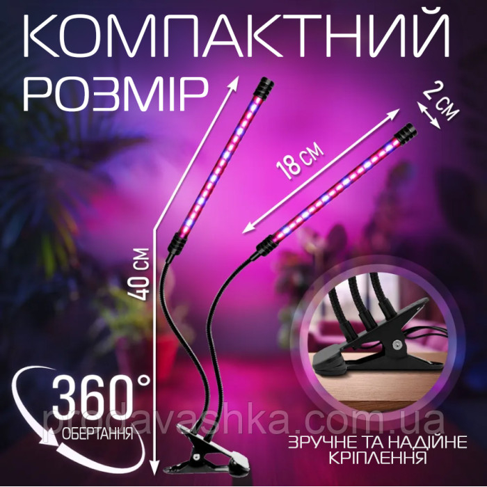 Професійна фітолампа повного спектру для підсвічування та вирощування рослин лінійні 2 фітосвітильники світлодіодний на прищіпці
