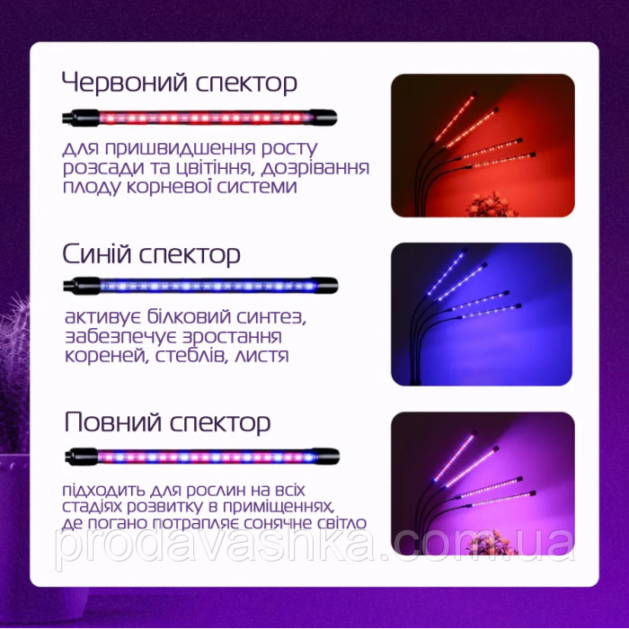 Професійна фітолампа повного спектру для підсвічування та вирощування рослин лінійні 4 фітосвітильники світлодіодний на прищіпціФітоосвітлення - це спеціальне штучне освітлення, яке створюється за допомогою фітоламп. Ці ... Читати далі...