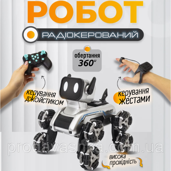 Робот собака інтерактивна іграшка пес на радіокеруванні з пультом та рукою зі звуком та музикою на 8 колесах виконує командиРобопес на восьми колесах — це інноваційна іграшка для юних шанувальників техніки та робототехні... Читати далі...