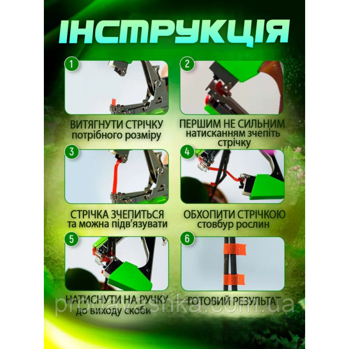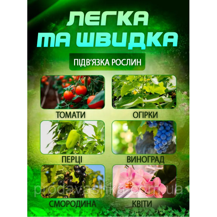 - Безпека для рослин завдяки спеціальній м'якій та міцній стрічці.