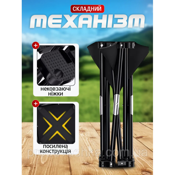 Зручний та компактний складаний туристичний стілець – ідеальний вибір для туристів, рибалок, мисливців, пікніків та просто відпочинку на природі. Легкий та мобільний, цей стілець забезпечує максимальний комфорт.