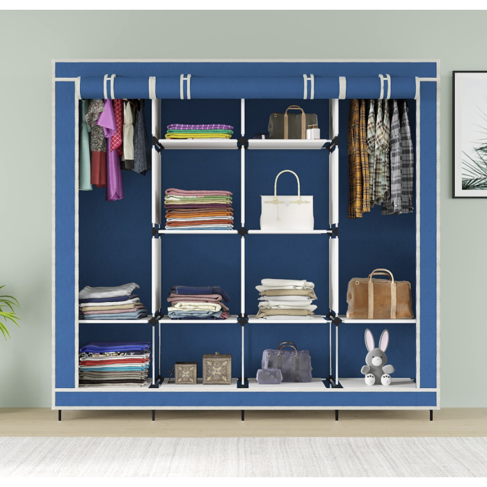 Тканинна шафа для одягу на 4 секції на 12 полиць Синій тканинний органайзер
