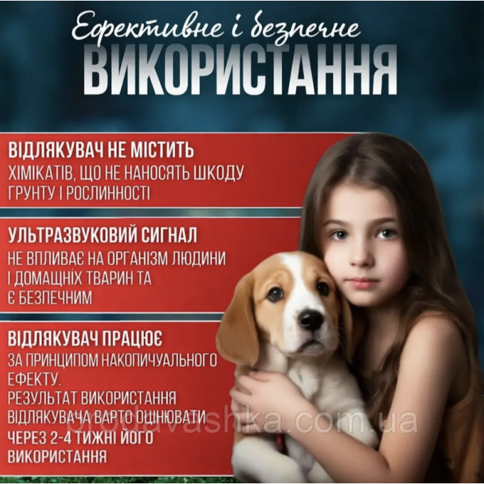 - Ультразвук + вібрація — подвійна дія на шкідників: ефективно відлякує, не завдаючи шкоди людям та тваринам.