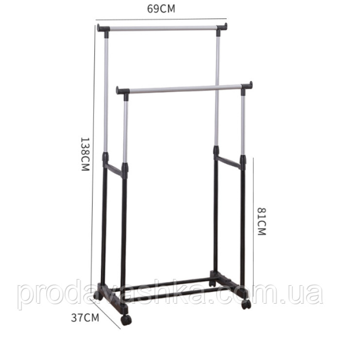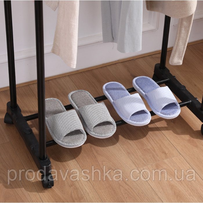 Зручна подвійна вішалка Double Pole телескопічна стійка для підлоги для одягу Дабл пол передвижная з полицею для взуття